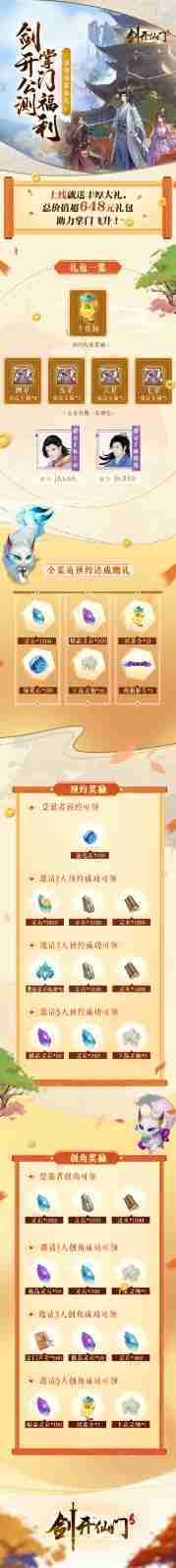 游戏为大家准备了海量的福利,,包括上线即可获得的全渠道预约礼包、、十连抽等福利,,,,输入密令“JK666”、、“JK888”即可领取紫色弟子,,,达到金丹期后还有功法宝箱可领,,助力全宗上下实力提升……所有奖励总价值超过648元,,,而邀请好友一起体验,,,,更可以获得额外的奖励哦~