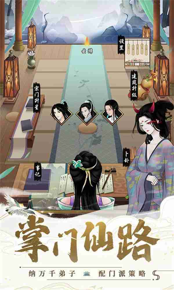 在游戏中,,,,玩家需要作为掌门去经营整个门派,,,可以兢兢业业,,,,也可以做个甩手掌门,,,或者不务正业,,,,寄情山水……总之一句话,,,,修仙不求人,,,,花式做掌门!!!